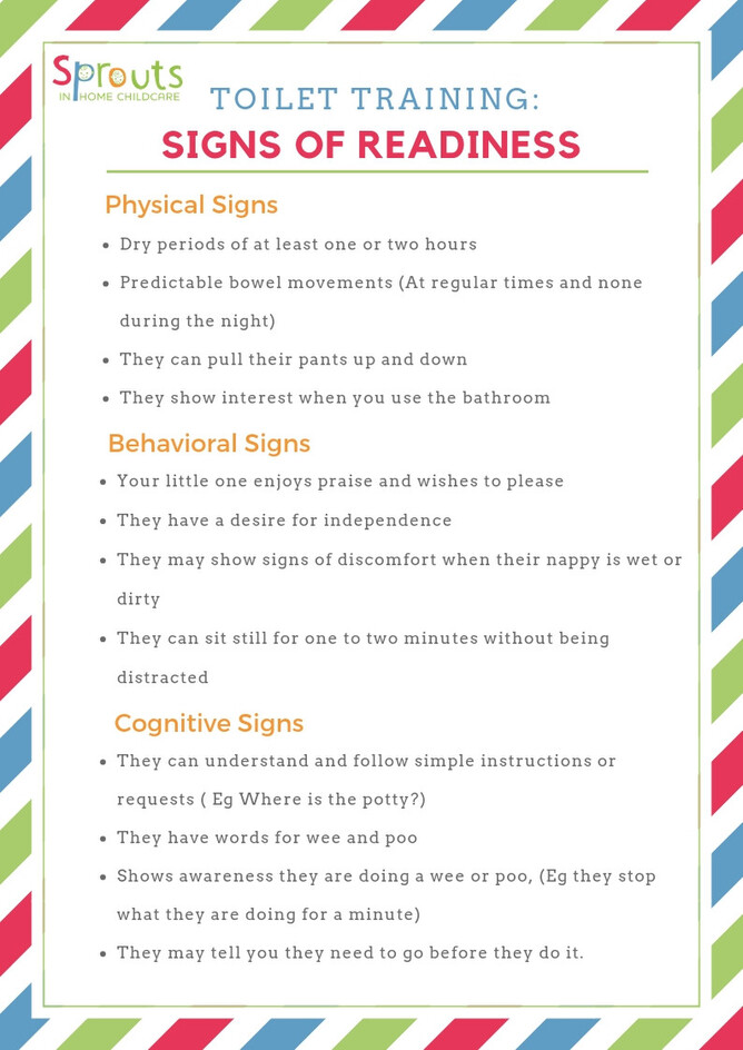 Our in-home educators at Sprouts will work with you to determine when your child may be ready to start toilet training. We have very experienced staff who can help you and your little Sprout on this journey!