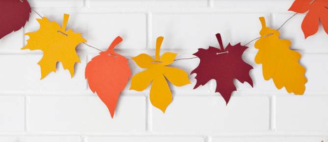 For older kids, making a Paper Leaf Garland could be a great idea. Using scissors to cut out cookie-cutter-like outlines and running string between the designs is all it takes for you and your children to create a great autumn decoration for your home.
